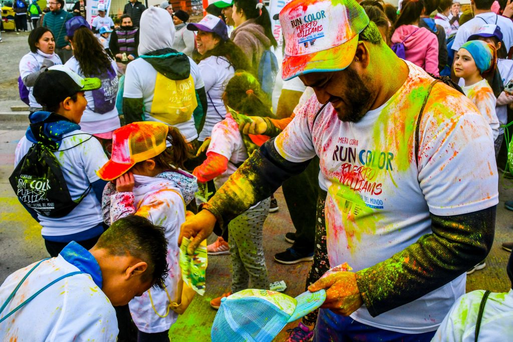 Así como en la corrida flúor de fines de octubre pasado, en esta versión con polvos de colores igualmente se congregaron unas 250 personas en el frontis de la Gobernación. Allí, cada uno de los vecinos, entre niños, adolescentes y adultos, hizo fila para obtener su kit de regalo: una polera, un jockey, un morral, bolsa de género y paquetes con polvo de colores biodegradables.