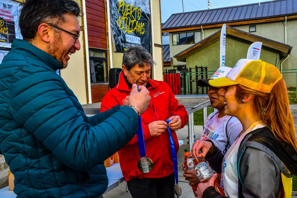Las personas que llegaron a la meta fueron recibidas por el gobernador de la Provincia Antártica Chilena, Nelson Cárcamo, y el consejero regional por dicha zona, Rodolfo Moncada. Ambos entregaron bebidas isotónicas y medallas a los participantes. Como hecho anecdótico, el gobernador Cárcamo también recibió polvos de colores entre la alegría de los adolescentes que finalizaron la carrera.